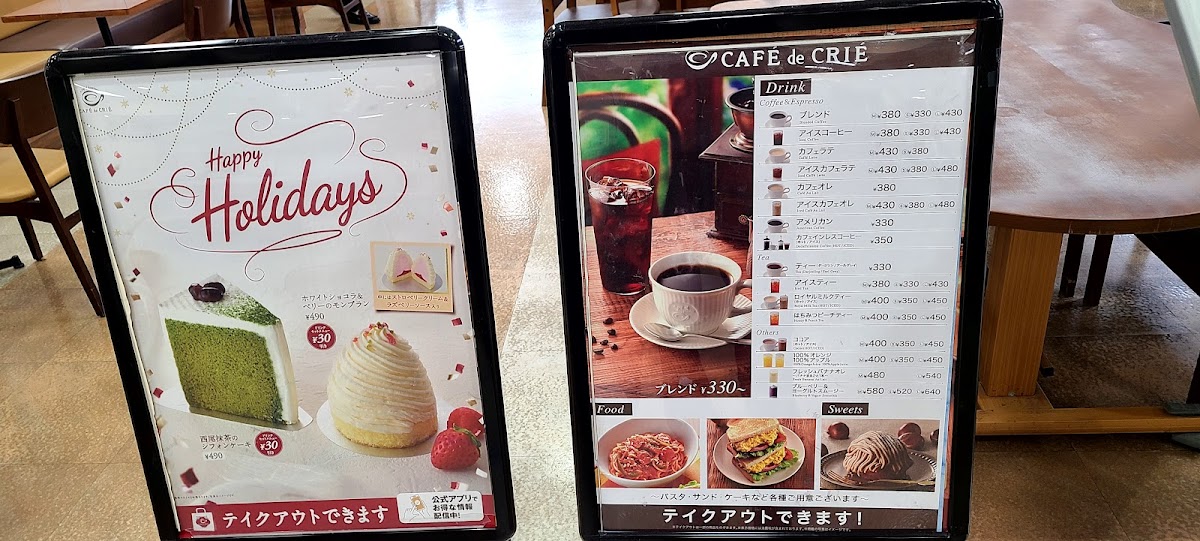 Cafe de Crie Osaka University Dental Hospital Shop Menu